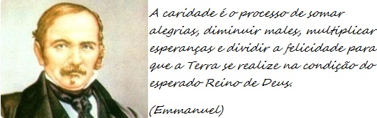 A caridade é o processo de somar alegrias, diminuir males, multiplicar esperanças e dividir a felicidade para que a Terra se realize na condição do esperado Reino de Deus. (Emmanuel)